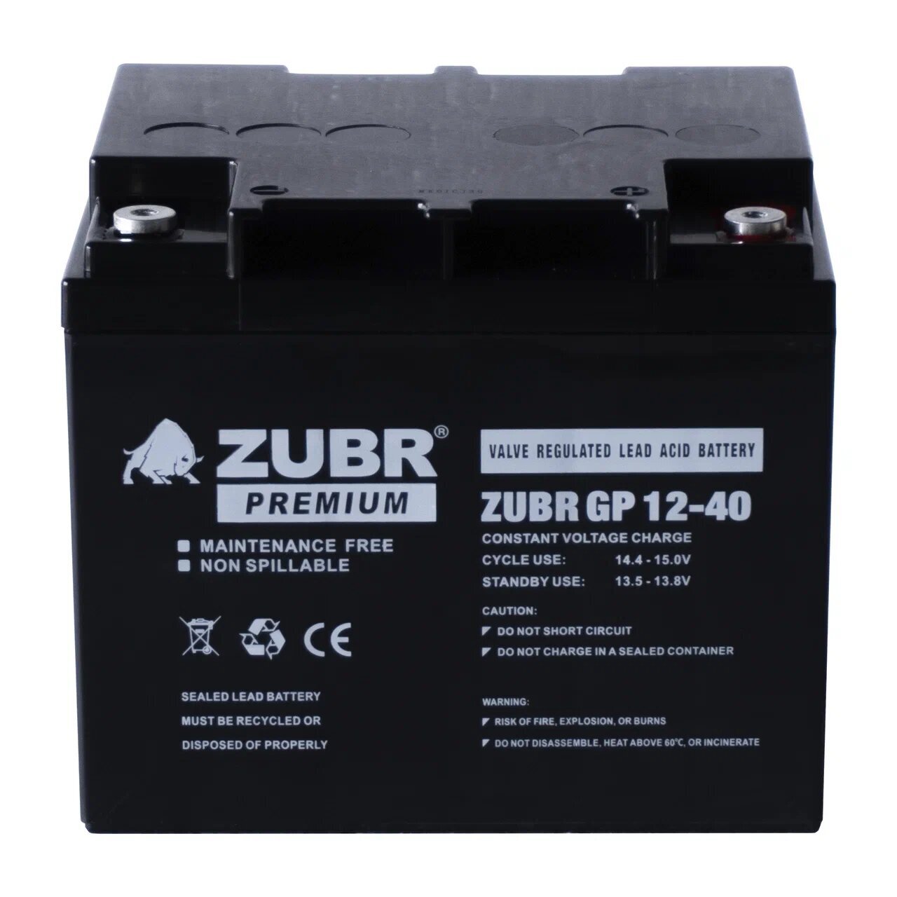Аккумулятор ZUBR GP12-40 стационарный свинцово кислотный, емкостью 40 Ач и напряжением 12В.