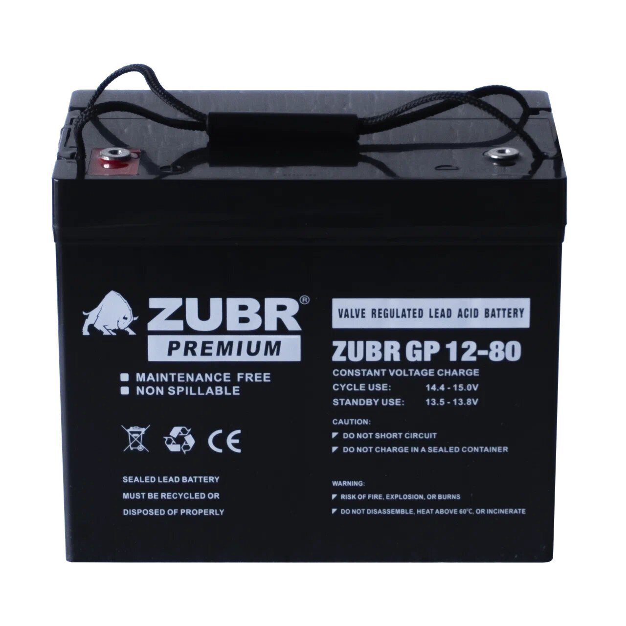 Аккумулятор ZUBR GP12-80 стационарный свинцово кислотный, емкостью 80 Ач и напряжением 12В.