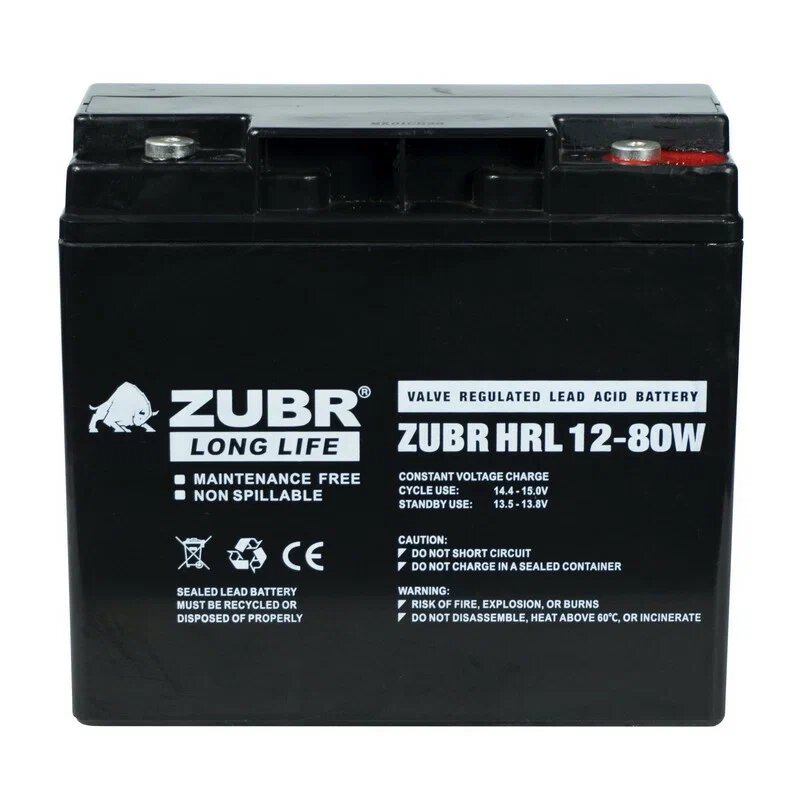 Аккумулятор ZUBR HRL12-80W стационарный свинцово кислотный, емкостью 18 Ач и напряжением 12В.
